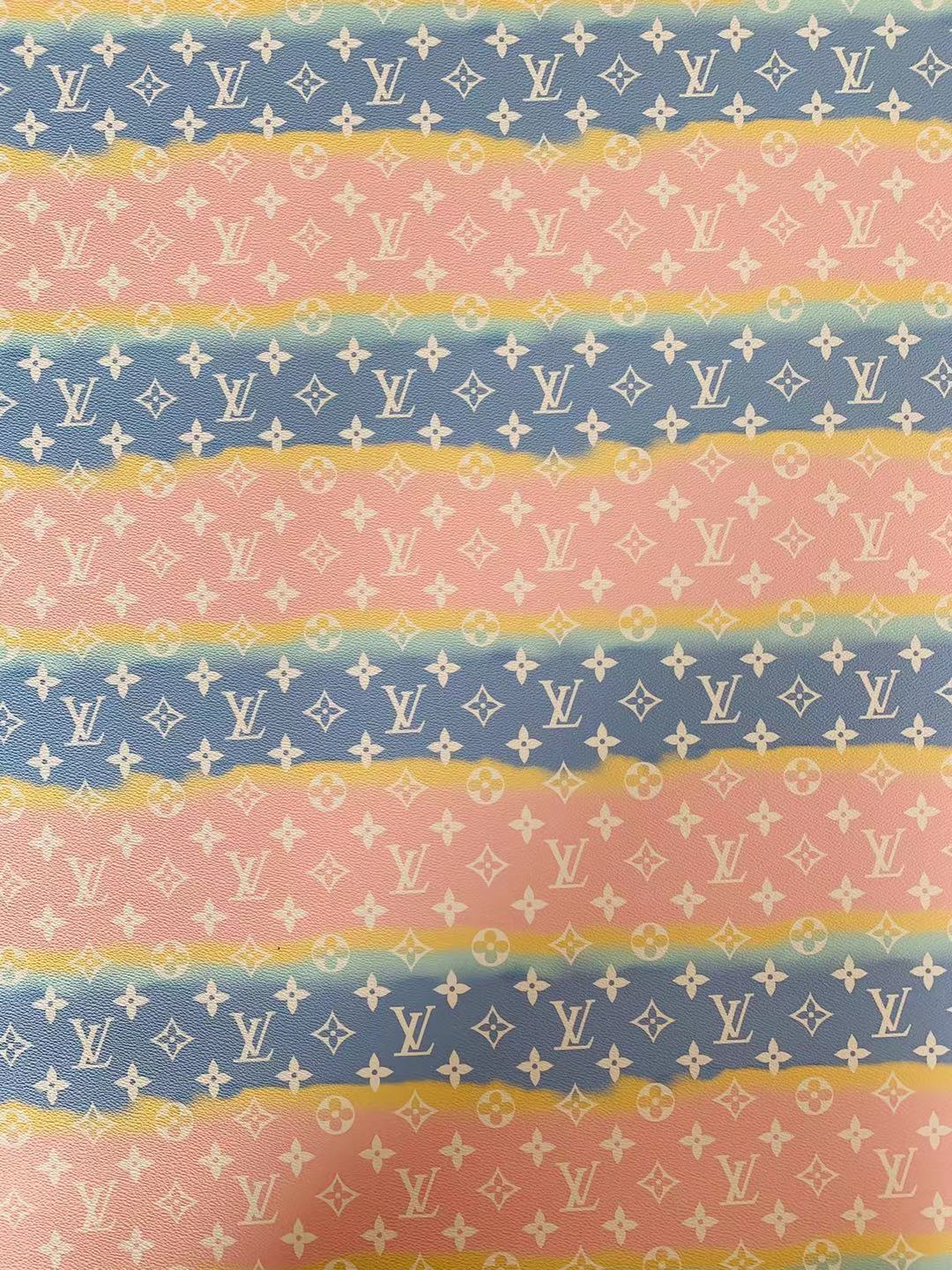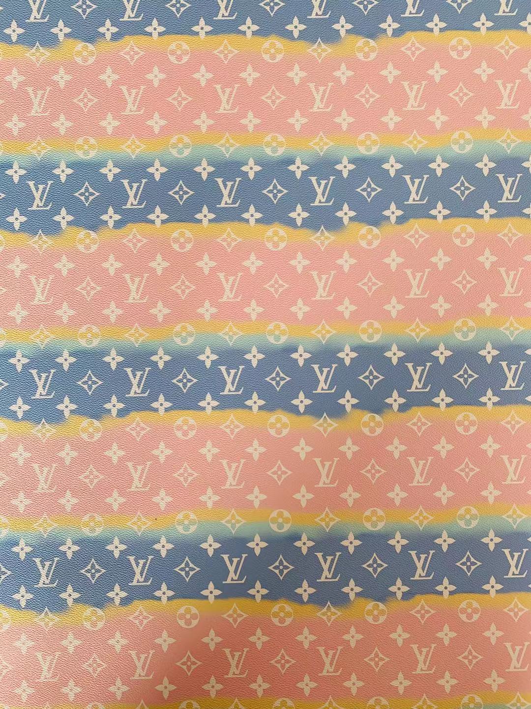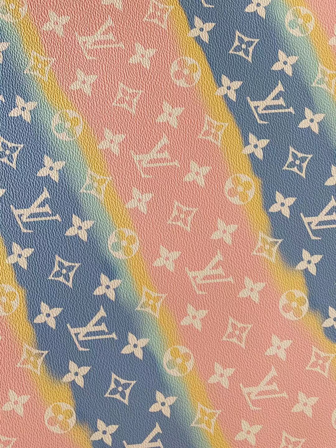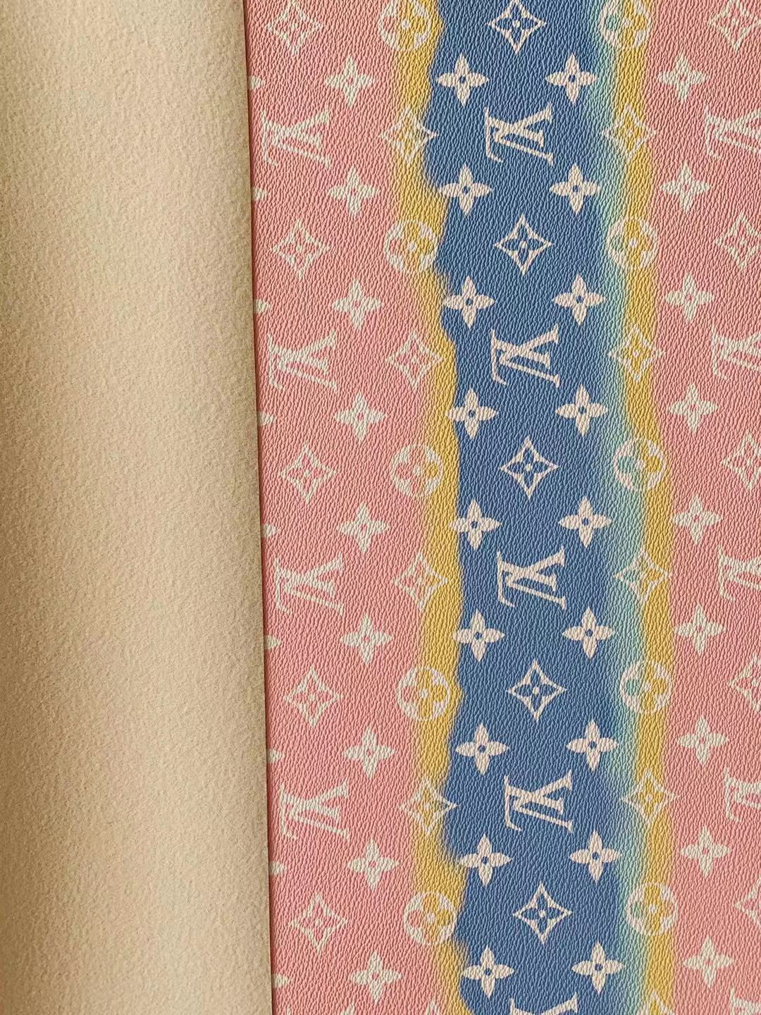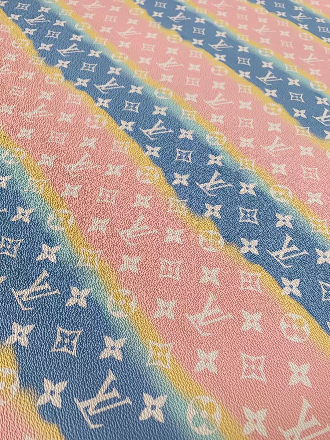 Fashion LV Lighting Pink Stripe Leather Fabric , Rainbow Design Shoes leather Bag Leather By Yards