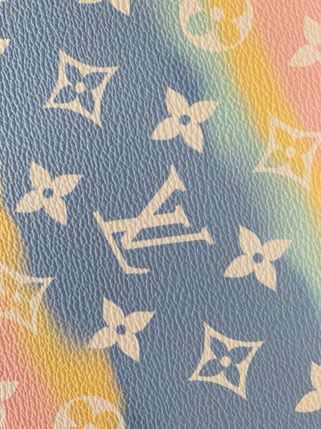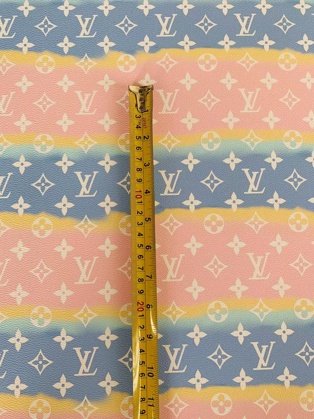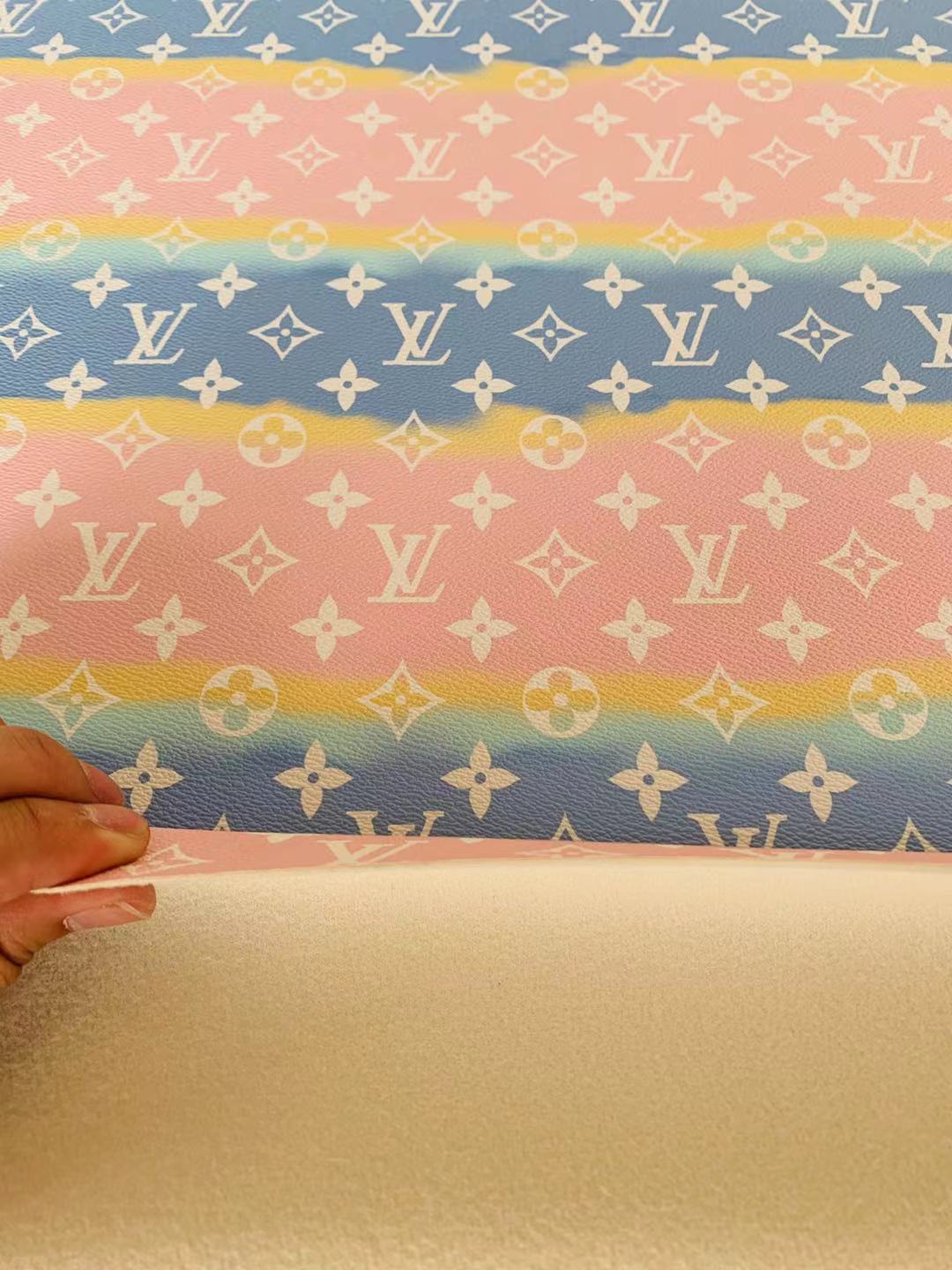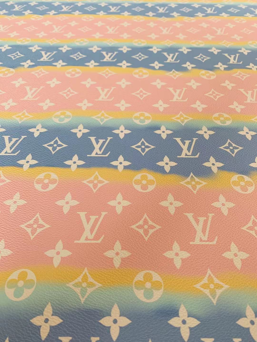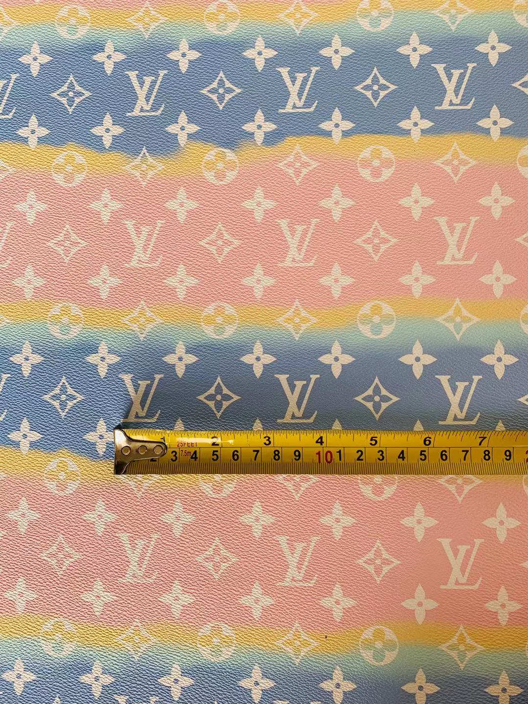 Fashion LV Lighting Pink Stripe Leather Fabric , Rainbow Design Shoes leather Bag Leather By Yards