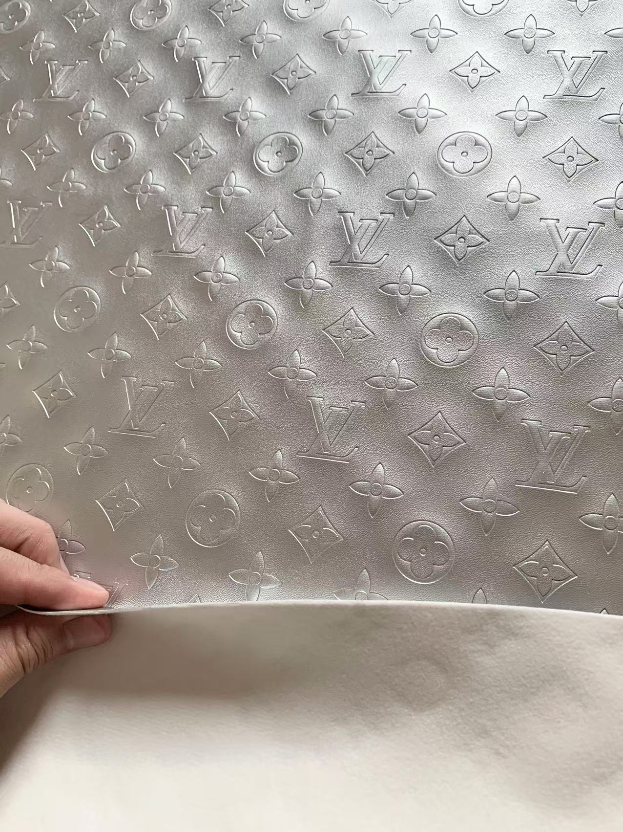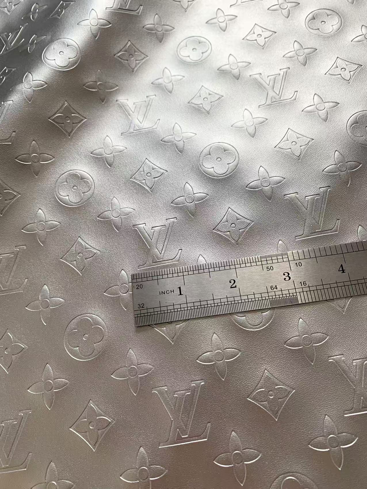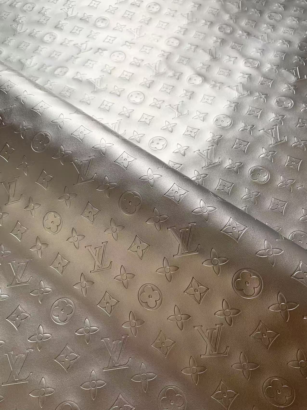 Napa Material Pearlescent Sliver Reflective LV Embossed Leather For Handmade Handicraft Goods