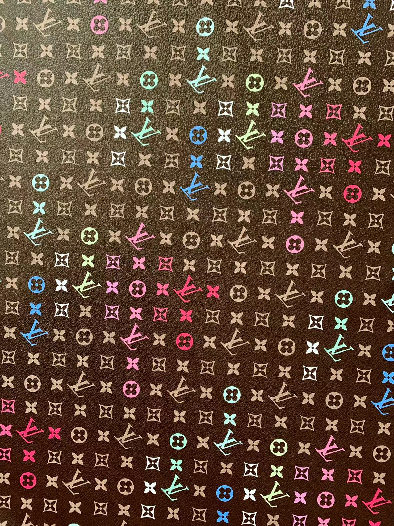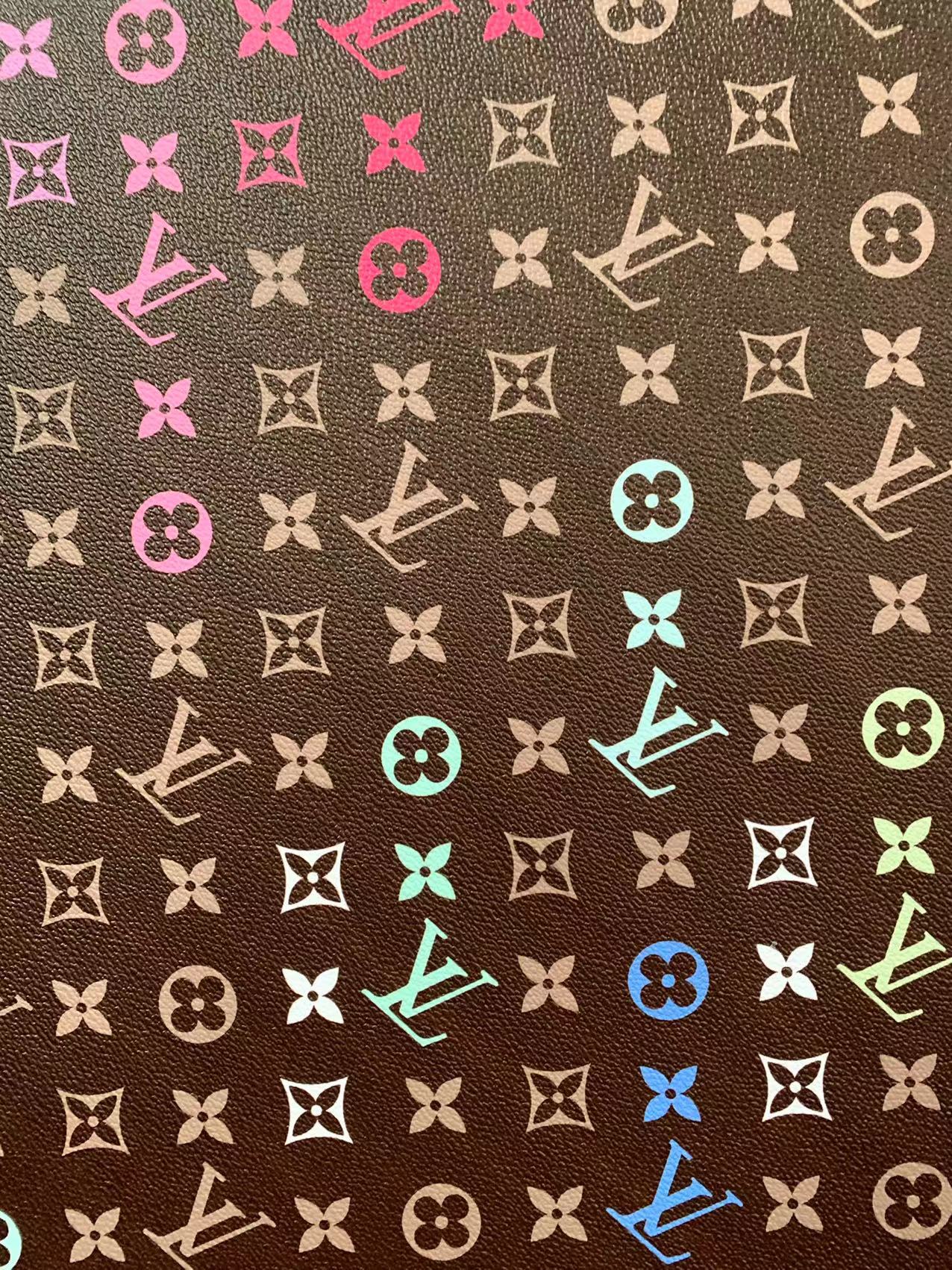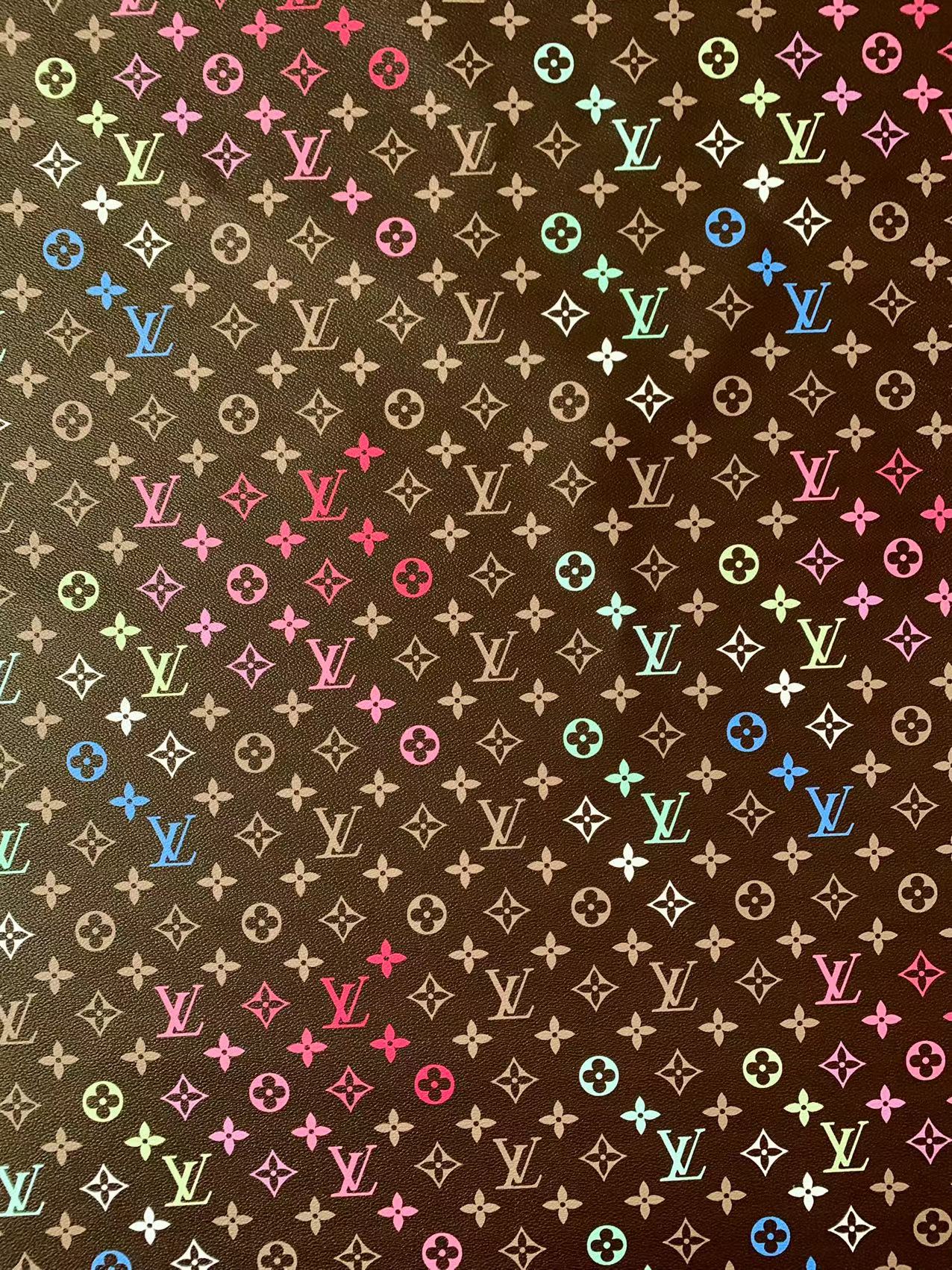 New Black Background Colorful LV Leather Case Fabric,Handmade Bag Fabric,Hand-made Shoes Fabric By Yard