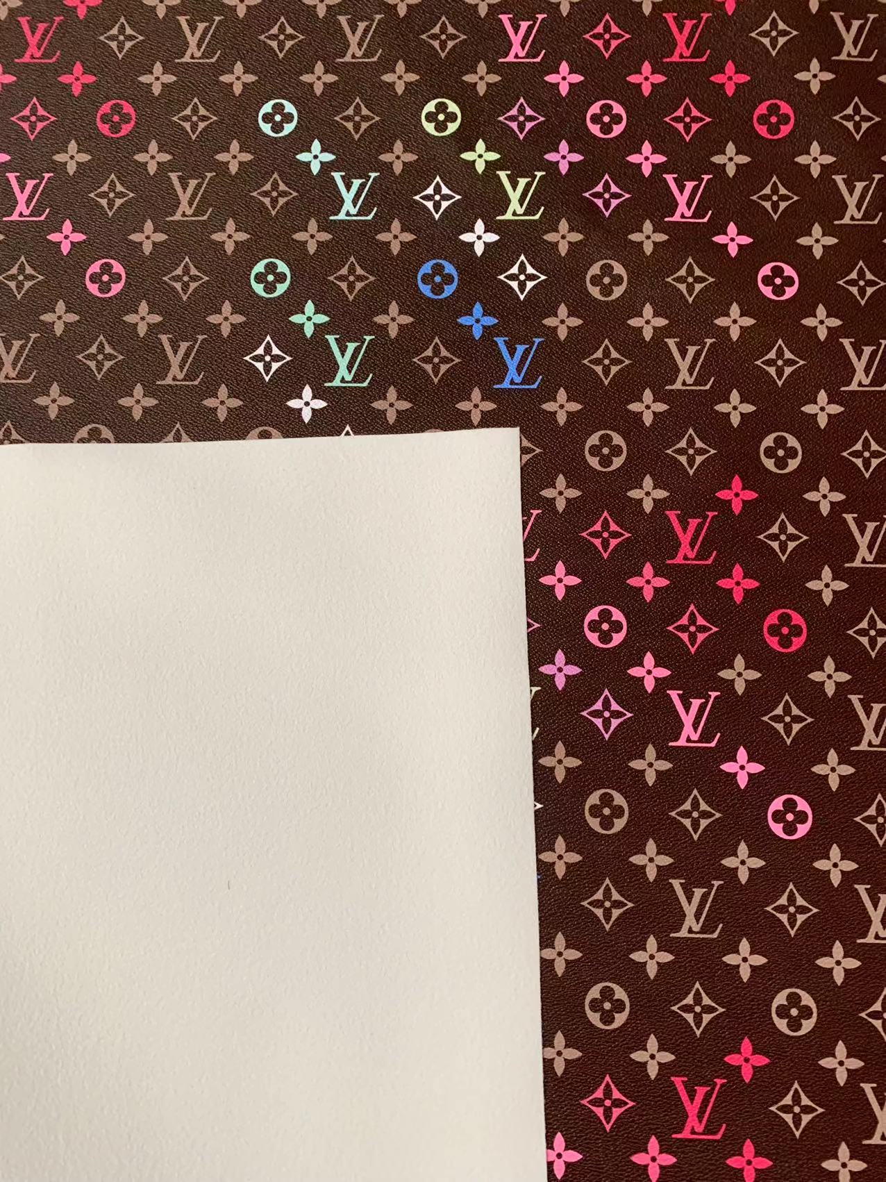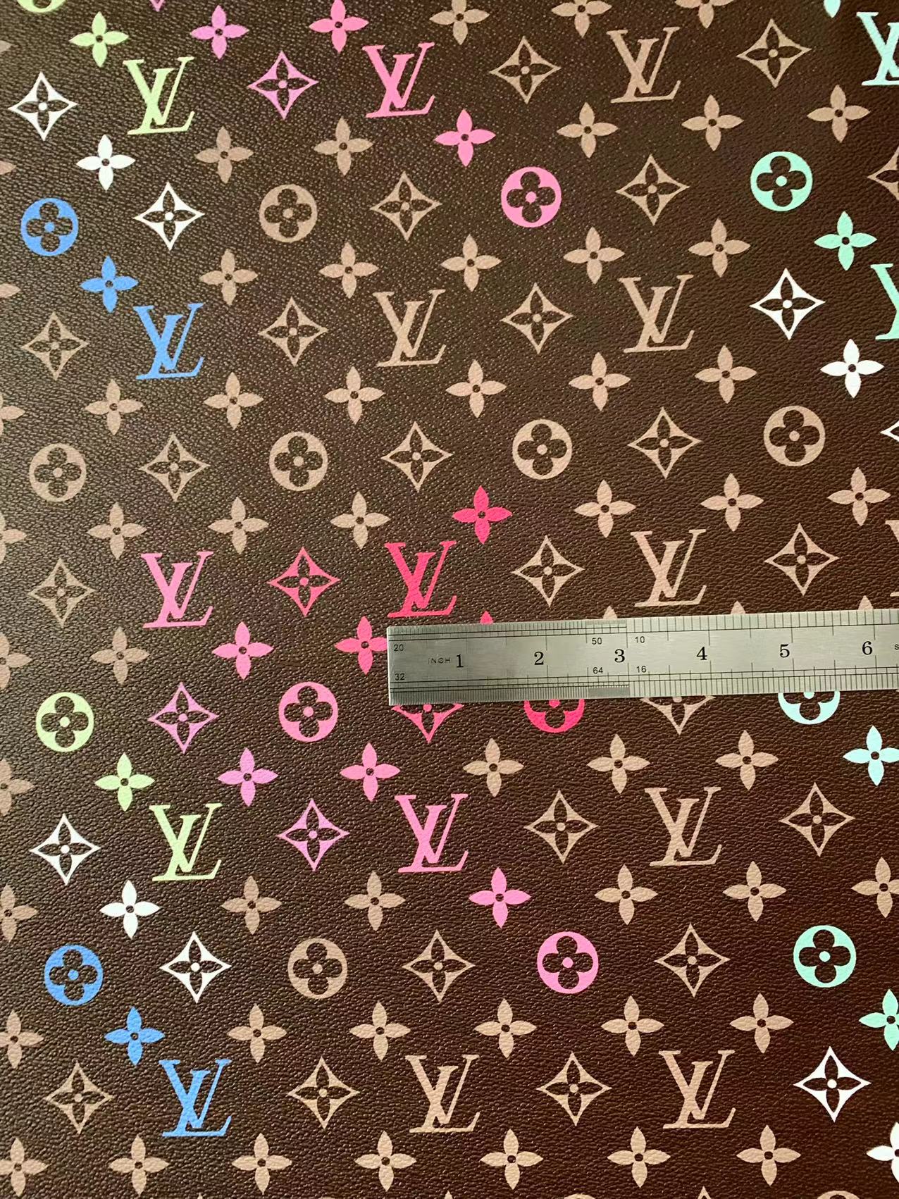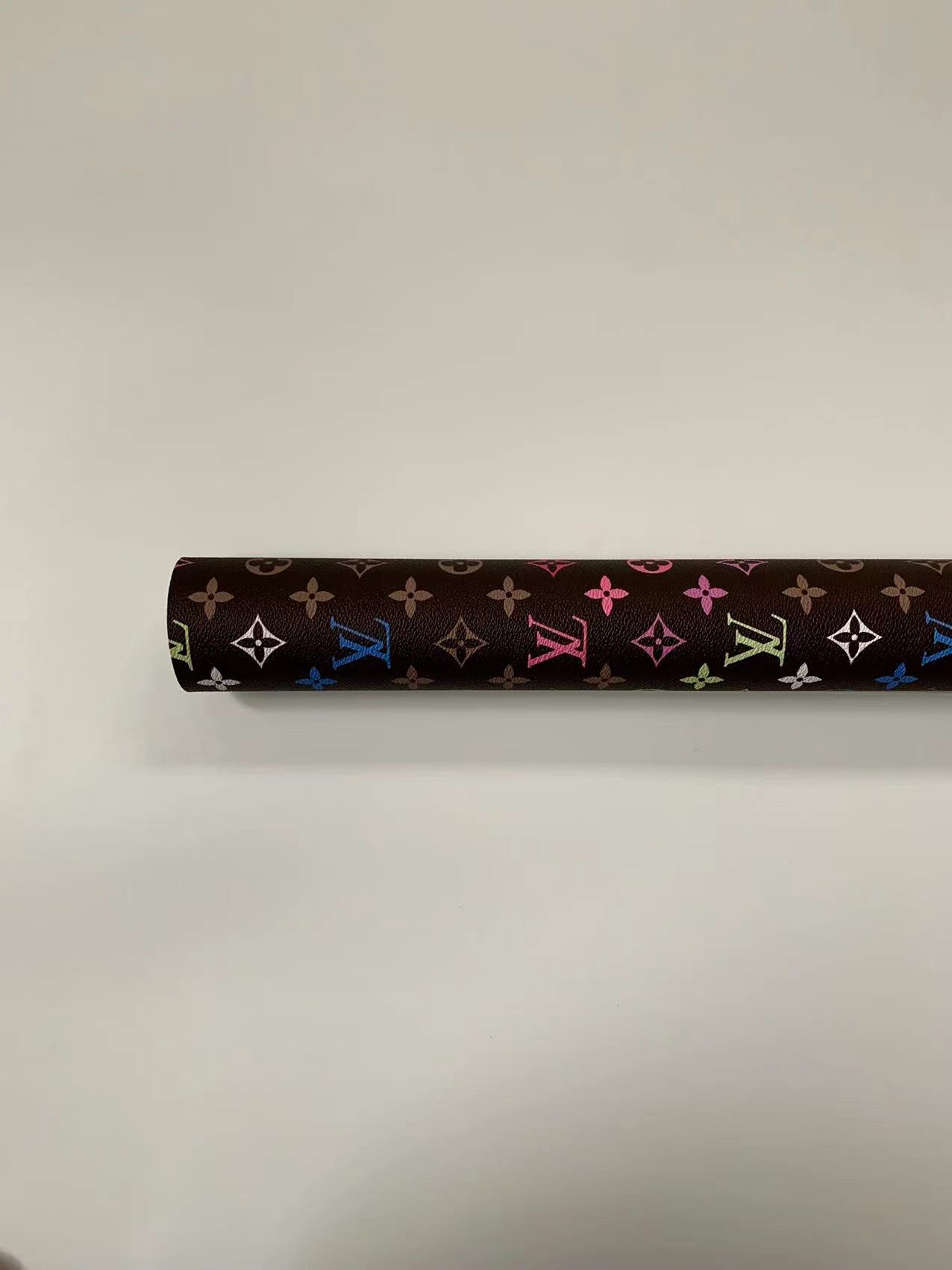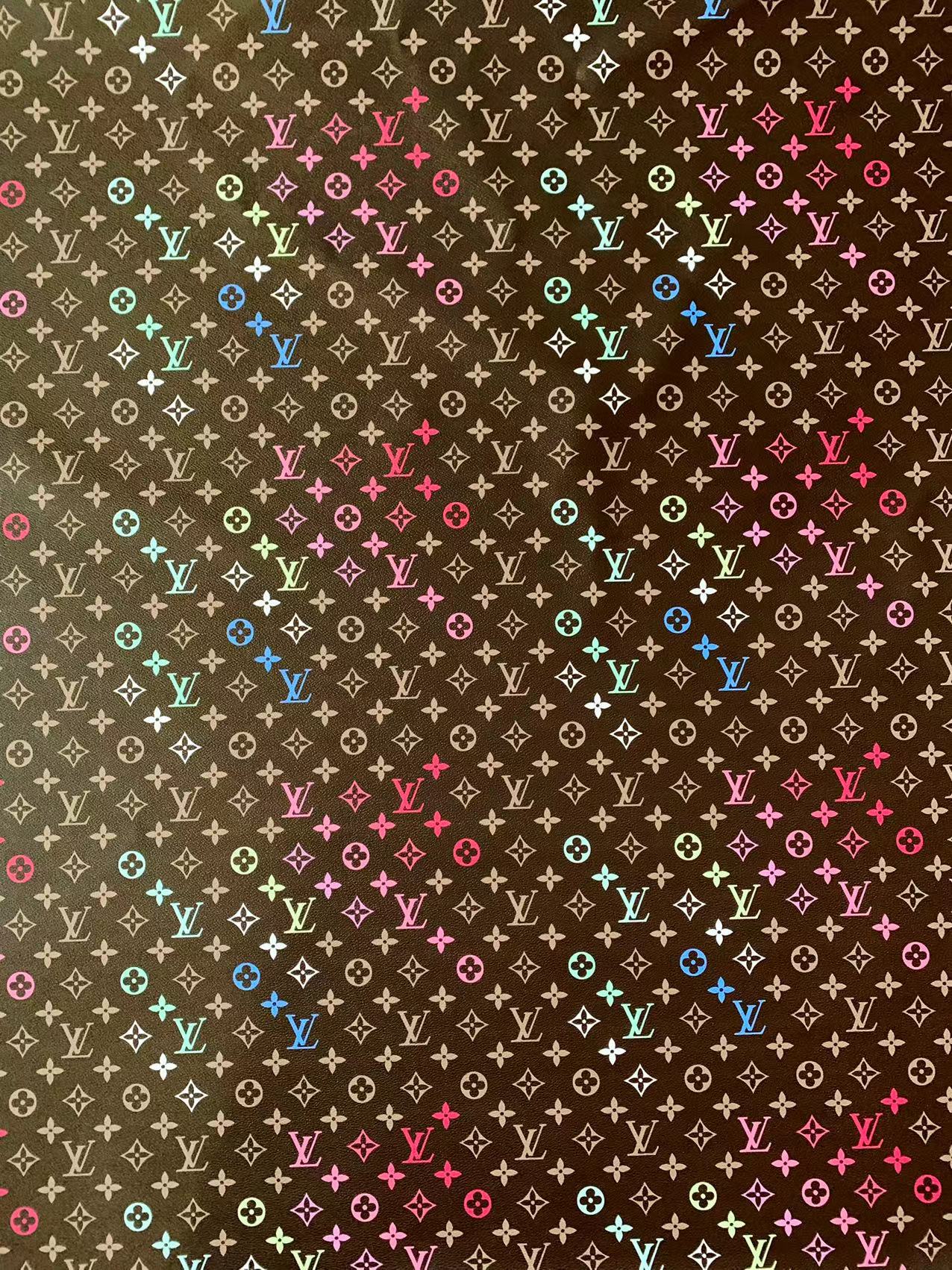 New Black Background Colorful LV Leather Case Fabric,Handmade Bag Fabric,Hand-made Shoes Fabric By Yard