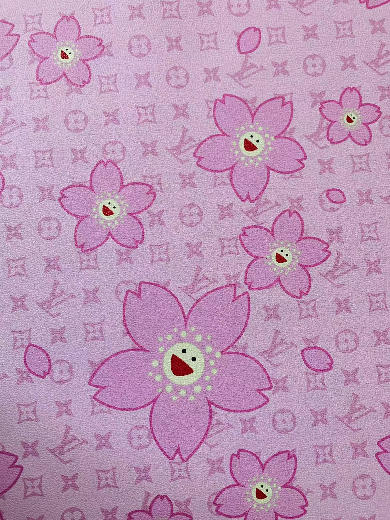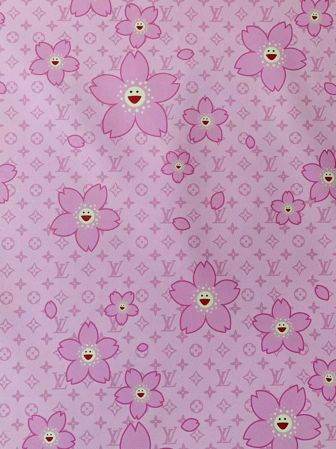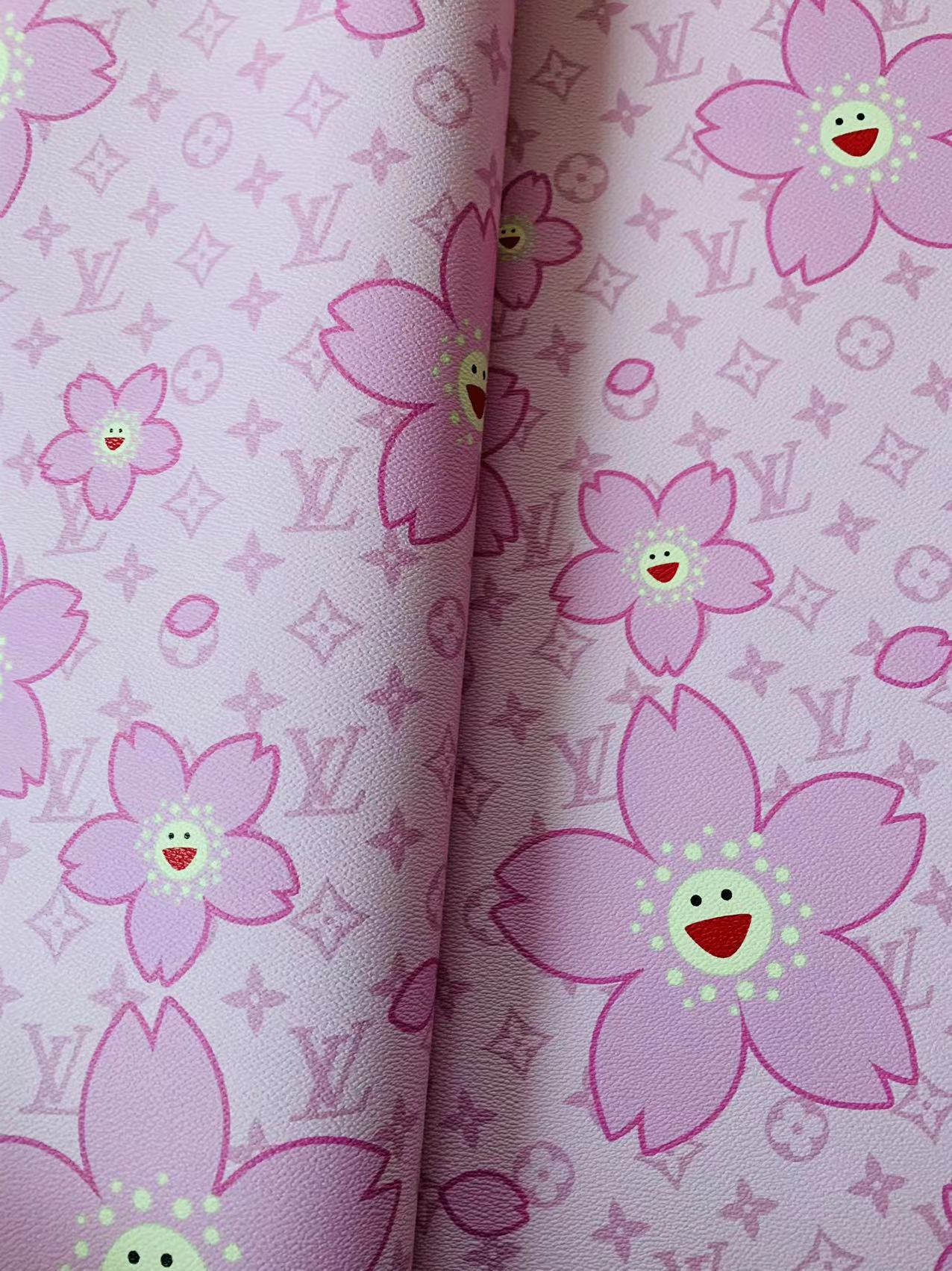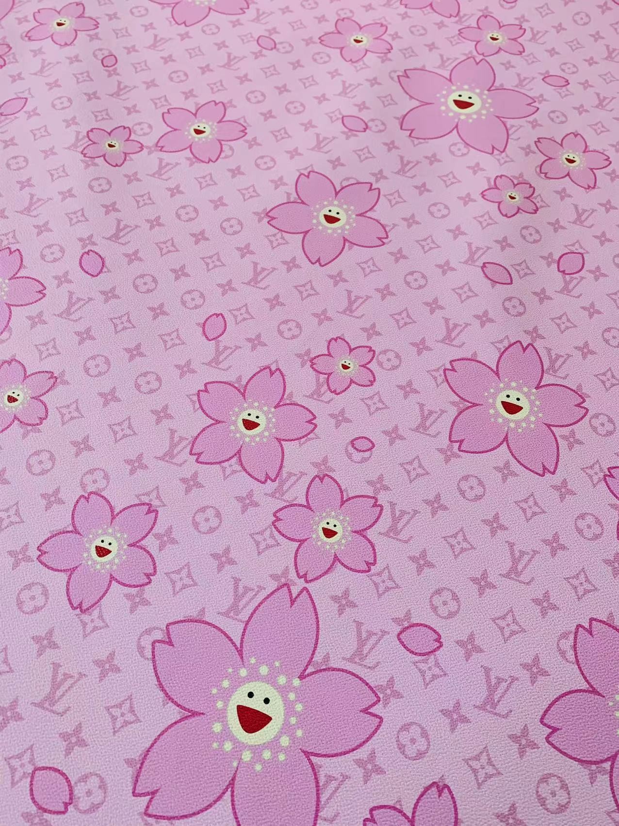 New Fashion Big and Small Pink Peach Design LV Leather Fabric For Handmade Handicraft Goods By Yards