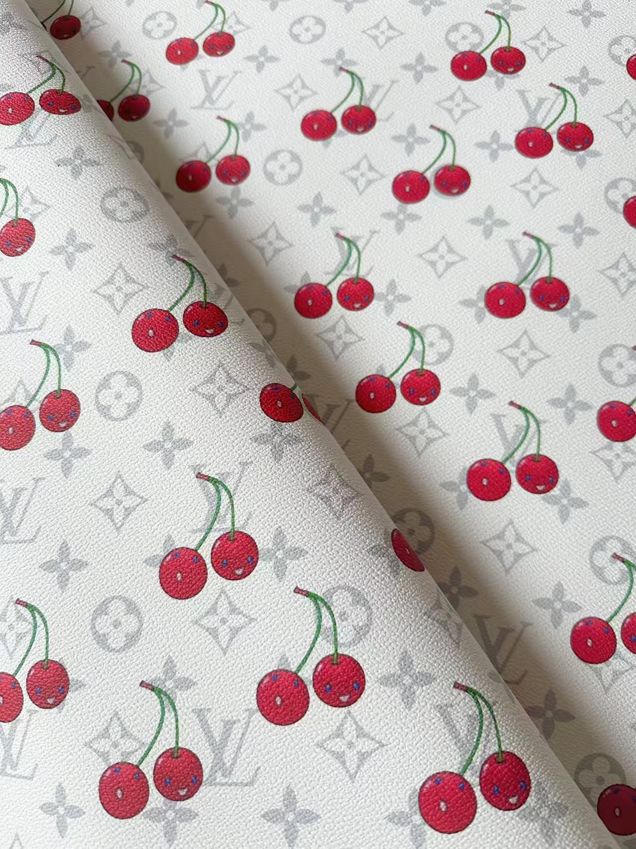 New White Cherry With LV Leather Fabric For Handmade shoes,Upholstery Handicraft Goods By Yard